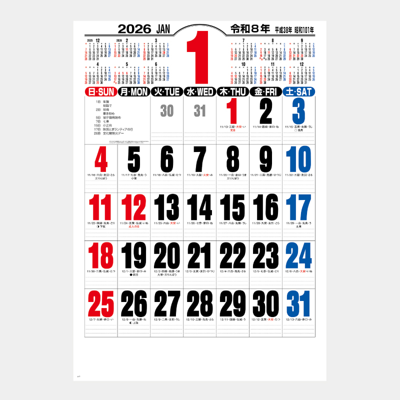 毎月年表付きの定番!見やすさ、使いやすさ抜群のジャンボカレンダー