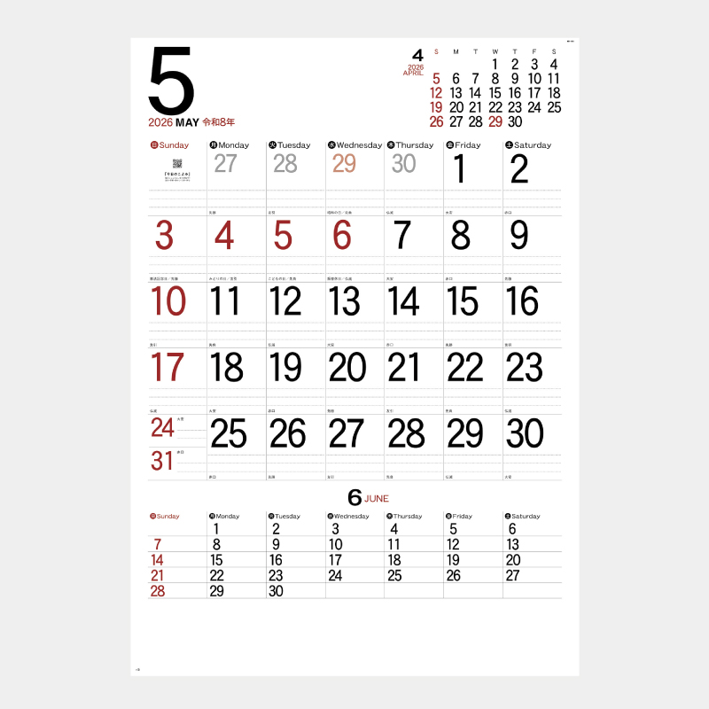 暦情報サイト連動商品Webサイトにつながる二次元コードが付いています。★シンプルで見やすい日付表示★上品な色使い