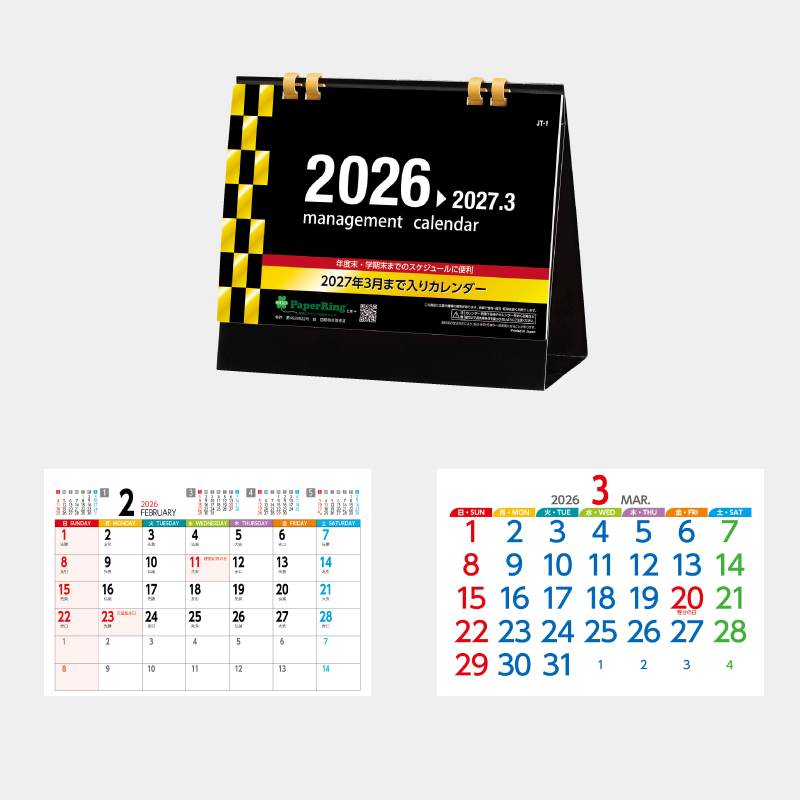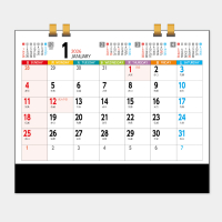 両面カラー印刷で翌年3月までの便利なカレンダーです。特に裏面は大きな文字とやさしい色使いがご年配の方にも好評をいただいております。最終ページ裏面は年齢早見表。