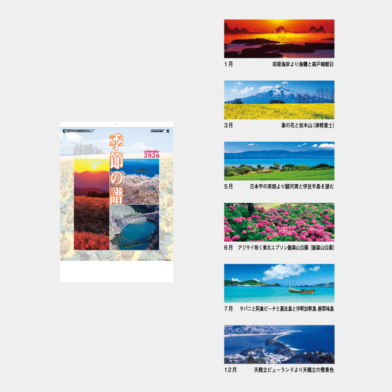 四季折々に変化する自然風景。季節の移り変わりを、その中で生きる小さな動植物の写真を加えて構成しました。